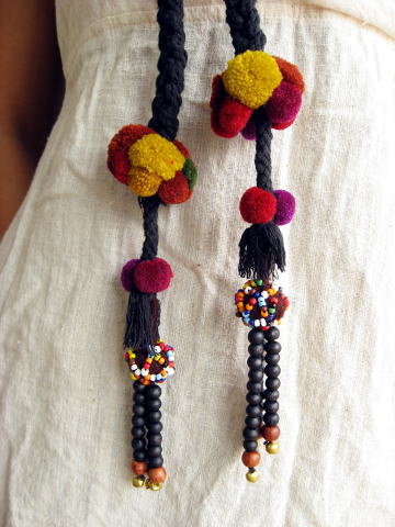 黒の綿紐三つ編み紐部分の長さ約110cm 両端ポンポン飾り長さ約20cm