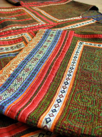 | 「美しく贅沢な手刺繍〜赤とダイヤのテープワークがアクセント〜上質エスニック♪」 手作り古布を、贅沢にたっぷり使った「世界にひとつだけ」のモン族のアートチュニック 〜愛着の1枚に加えていただければ嬉しいです〜 |