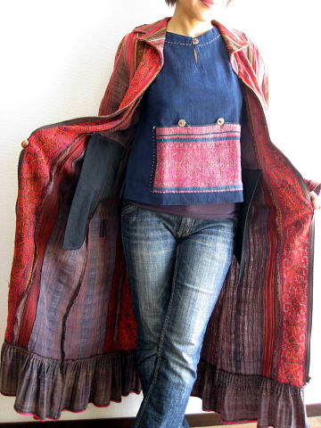 | 年々希少になりつつあるモン族の手仕事古布をデザイン&リメイクしたアートコレクションアイテムです 〜今回ご紹介したアートコレクションコート&ドレスは最良の古布で刺繍柄も美しいスペシャルな1点〜 「世界にひとつだけの嬉しい出会い」〜愛着の1枚に加えていただければ嬉しいです♪ |