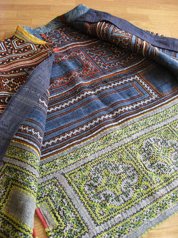 希少なモン族の丹精した手仕事古布をデザインリメイクした古布感が魅力の温もりある手仕事の1点