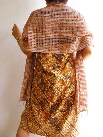 細い綿糸を自然の草木で染めた、ふわっと優しい色合いの涼感ショール 透け感のある涼しげな格子柄に手織りされたショールは爽やかな肌触り 大人のアジアンスタイルの襟元にさりげなく軽やかに 夏の冷房対策にも、部屋のしつらえに 心地いいアジアの風が抜けて行きます♪