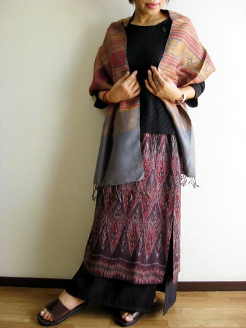 *黒無地のシルクスカートに絹絣を前後にふわり〜アジアの香り大人のマットミー* 〜生地状態の良い上質オールドシルクで作られたエプロンスカートお届けします〜 皺になりにくく、乾きやすいシルクは、旅行でもとっても活躍してくれます 軽くて嵩張らないから、いつも一緒〜アジアンスタイル楽しみましょう♪ |
